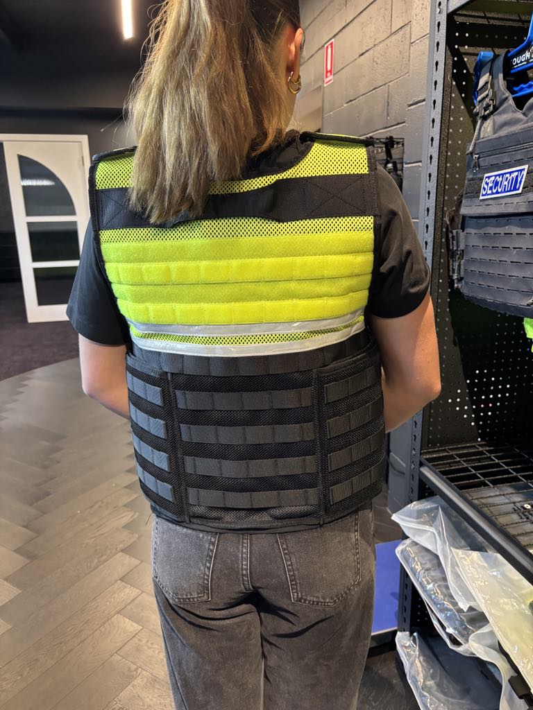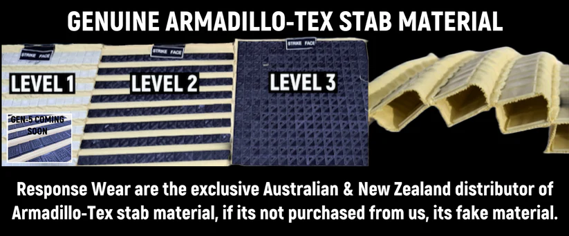 You can sit down wearing our vest, but try sitting down with the non flexible options offered by other manufacturers! Some of our competitors vest are made for U.K. conditions where our Australian climate has not been taken into consideration. Our material is lightweight, flexible and has a patented design that allows air to enter and heat to escape from the material easier. This is a patented design not offered by any other stab protection company in the world!